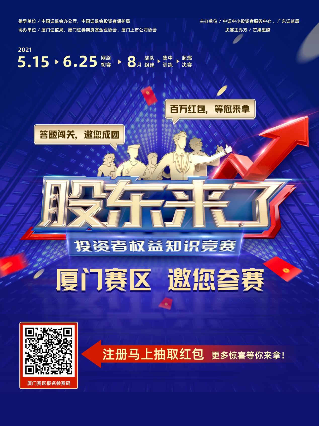 2021年是“十四五”規(guī)劃開局之年,為進一步落實證監(jiān)會黨委關(guān)于資本市場人民性要求和保護投資者合法權(quán)益的職責,在會辦公廳、投保局指導下,投服中心將聯(lián)合廣東、四川、湖北、內(nèi)蒙古、海南、西藏六證監(jiān)局共同舉辦《股東來了》2021投資者權(quán)益知識競賽,面向廣大中小投資者普及權(quán)益知識,示范引領(lǐng)全面知權(quán)、積極行權(quán)、依法維權(quán)。